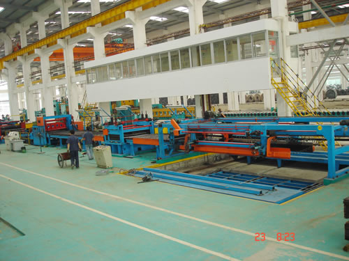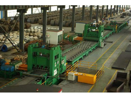 Cut to length production line is made up of coil car, decoiler, entry support device, width adjustor device, leveling machine, gauge table, shearing machine, run out table, pneumatic discharge and stacker device, unloading table, pneumatic system, electrical system with computer PLC program control and hydraulic system. The rolling plate is unfolded and leveled. Then it is sized and sheared into the needed flat plate with a certain length.