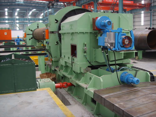 Spiral welded pipe making machine is suitable for various fluid conveying such as petroleum, natural gas and water as well as construction structural pipes and piling pipes.